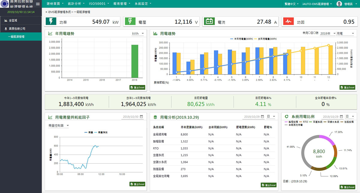 As domestic industries continue to grow, international fuel prices increase, and Taiwan is a subtropical climate with high heat and humidity, and also the Earth has limited resources, the price of power is due to rise. In order to reduce production and operation costs, All Packing Enterprises has invested into the implementation of an energy management, monitoring system with hopes of effectively lowering the allocation, and monitoring of power during peak periods to prevent needless waste of resources, and also managing the quality and efficiency of electricity usage in all departments.