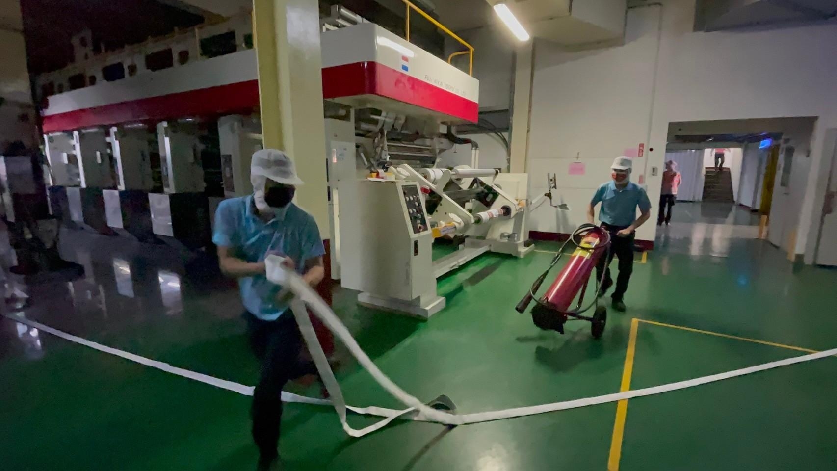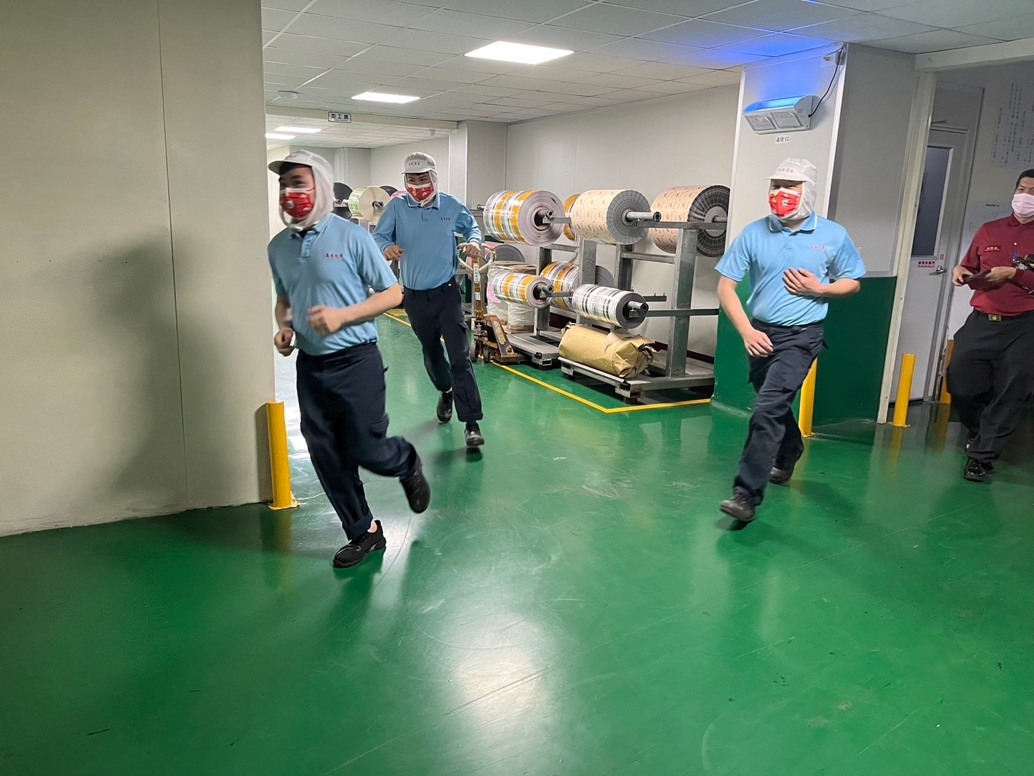 本公司每年落實舉行兩次自衛消防編組演習,教育全體員工具備防火意識,始能有效預防火災。