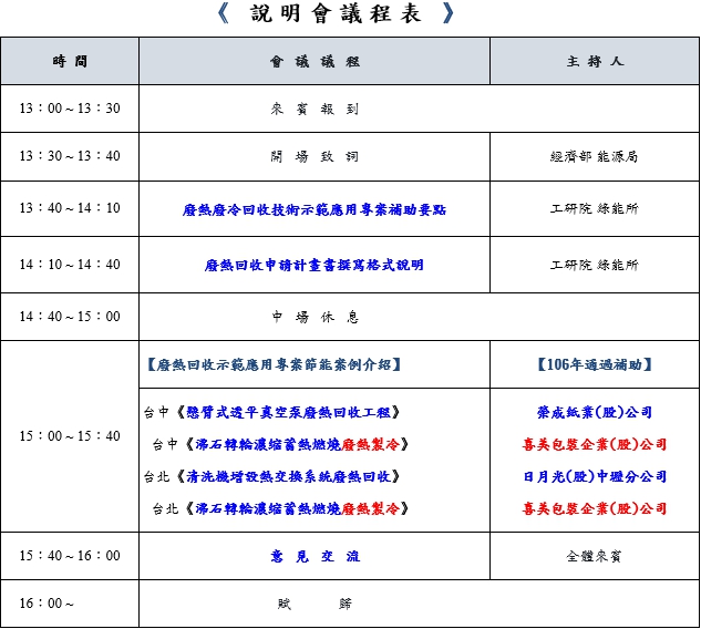 2018年10月17日、19日經濟部能源局受邀參加『108年度廢熱與廢冷回收技術示範應用專案補助說明會』傑出廠商案例分享 首頁 最新消息 2018年10月17日、19日經濟部能源局受邀參加『108年度廢熱與廢冷回收技術示範應用專案補助說明會』傑出廠商案例分享