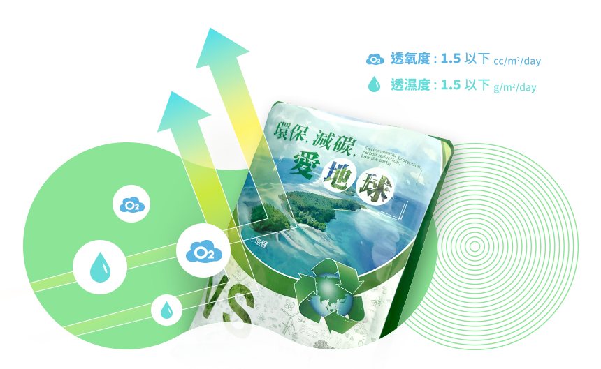 現在是不耐熱的PE或PP材料,供應商陸續研發出阻隔水氣及氧氣的方法中,從最初原材料的透氧度7900 cc/m2/day及透濕度24~48 g/m2/day,目前已經研發到透氧度1.5以下 cc/m2/day及透濕度1.5以下g/m2/day,已大大突破,目前供應商持續精益求精!